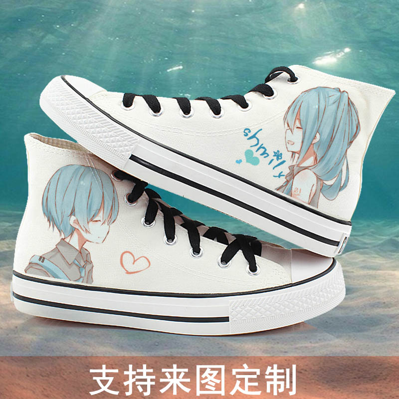 YOVCA手绘情侣鞋平底大码板鞋高帮帆布鞋女鞋男鞋休闲鞋动漫周边