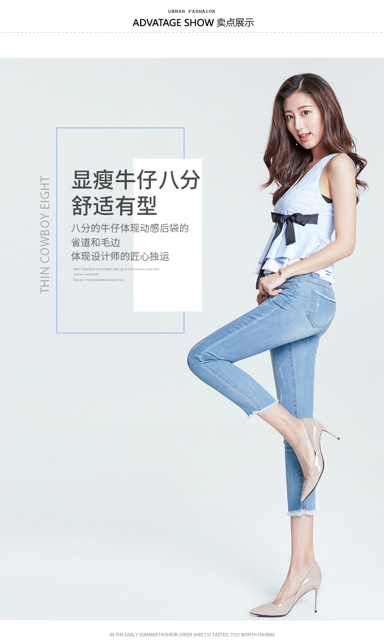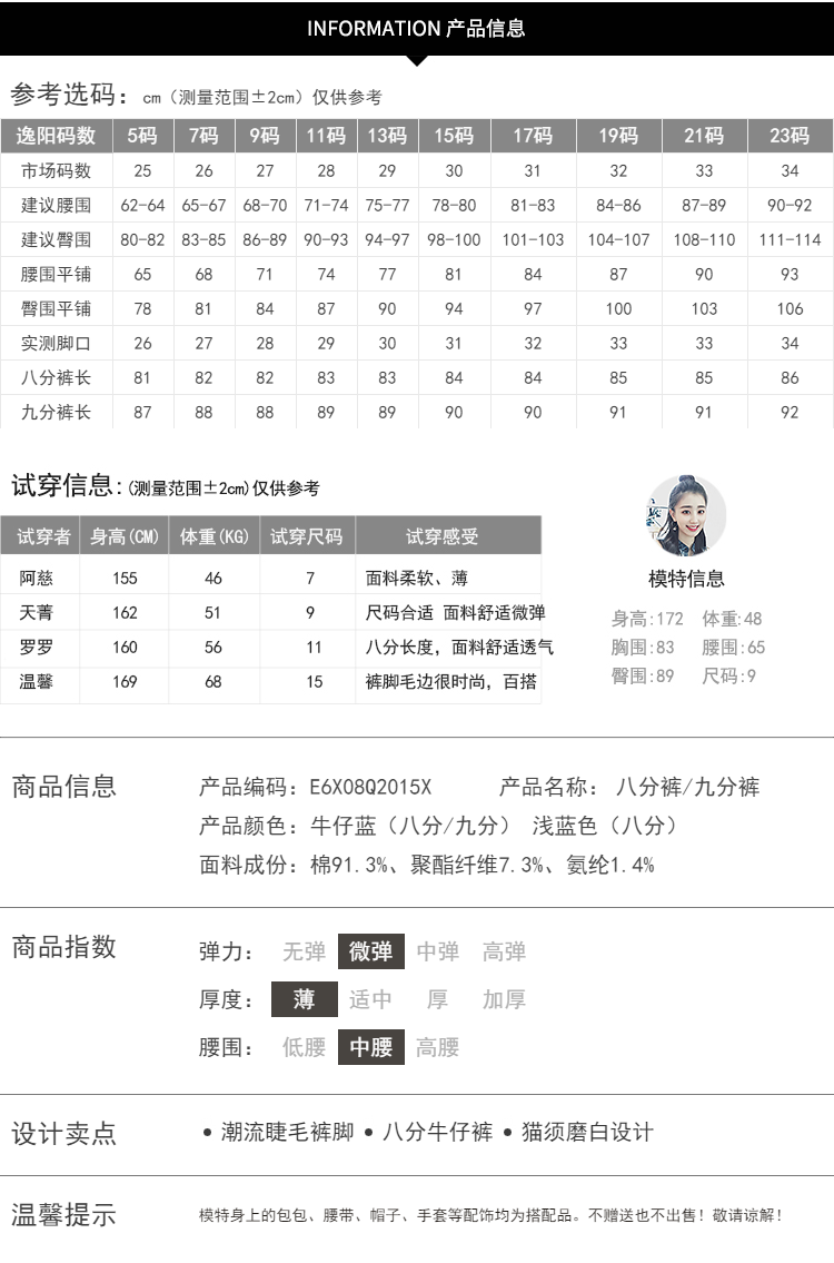 - 颜色分类:牛仔蓝-八分 浅蓝色-八分 牛仔蓝-九分