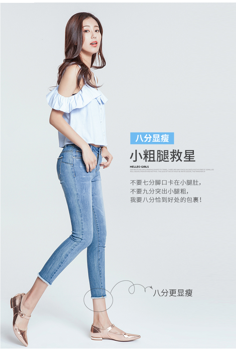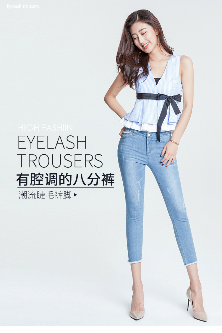 小脚睫毛裤脚 时尚磨白 隐藏美人心机