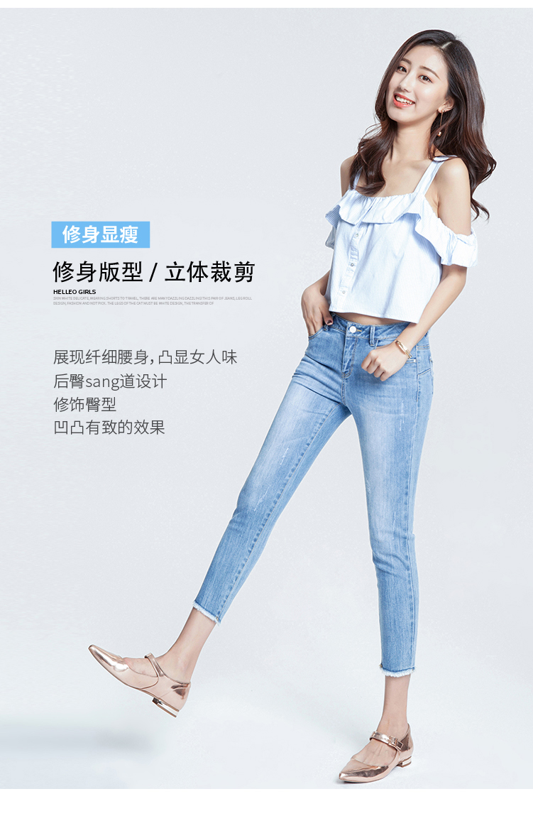 逸阳女裤2018新款夏季牛仔裤女毛边显瘦弹力铅笔小脚裤九分裤2015