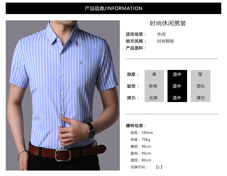 产品名称:花花公子男士短袖衬衫条纹修身商务休闲青年免烫短袖衬衣男寸衫潮